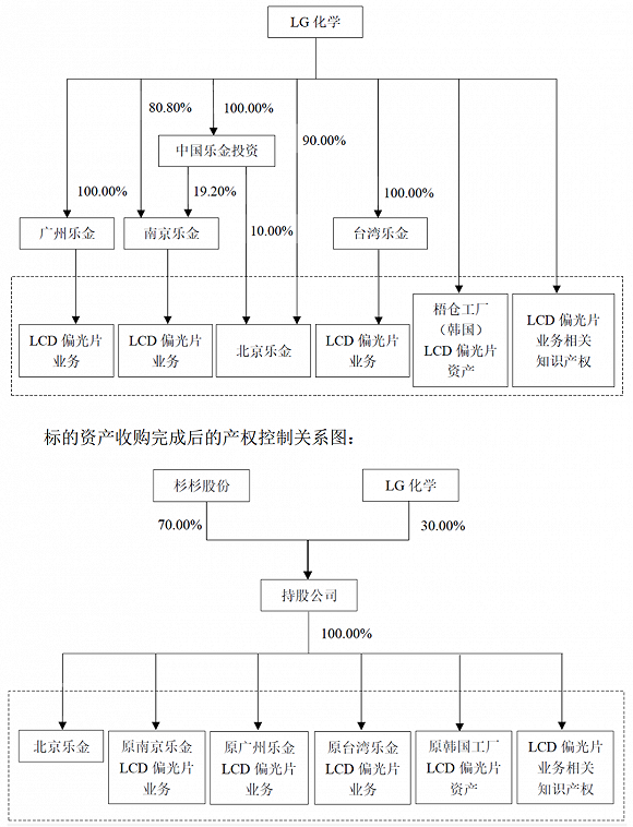 本次交易涉及的资产包括北京乐金100%股权,南京乐金、广州乐金、台湾乐金LCD偏光片业务,以及LG化学直接持有的LCD偏光片资产和与LCD偏光片有关的知识产权。