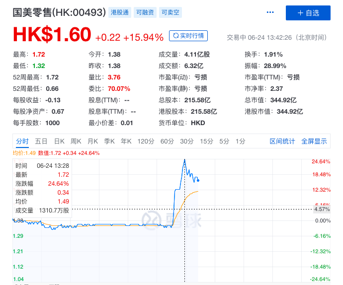 “前首富”出狱的消息刚刚传出,资本市场马上起了波澜,在香港上市的国美零售股价直线拉升,涨幅一度达到20%以上,股价同样涨势凶猛的还有国美金融科技、中关村、*ST美讯等“国美系”上市公司。