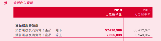 线上渠道的分量与日俱增,但国美的转型却不尽人意。根据国美零售2019年年报,其电器及消费电子产品的线上销售收入为20.56亿元,占比仅为3.46%,这无疑影响着国美的整体市场份额。