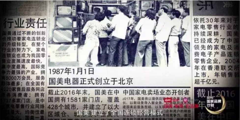 1987年1月1日,选了个良辰吉日,国美电器店开门营业。国美,寓意“全国最完美的电器”,胜在质朴。