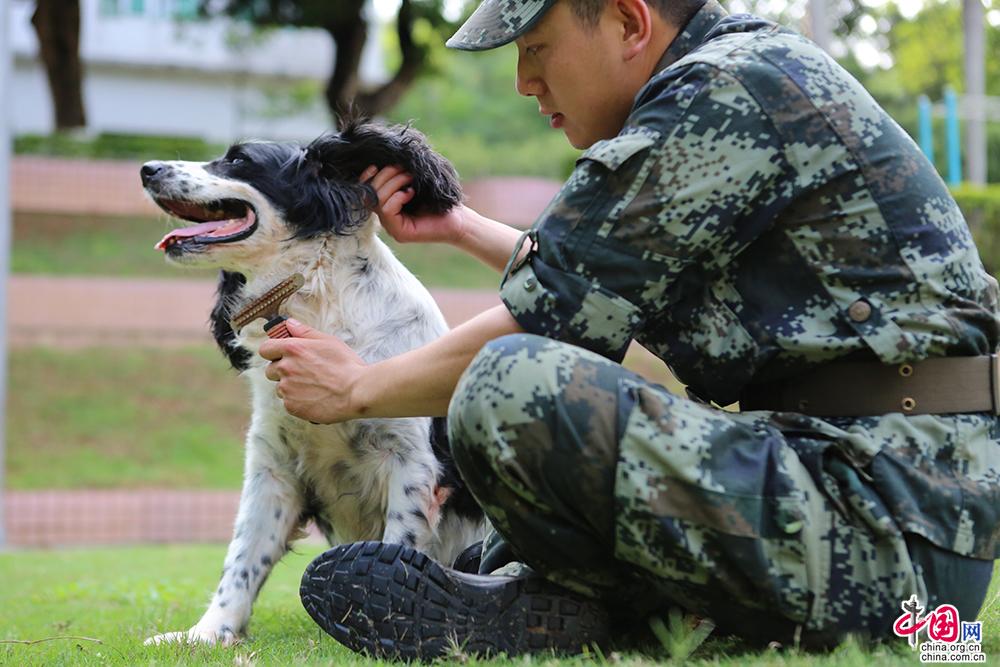 “它们也是战友,是战斗犬,我们从来不称为狗!”警犬班班长朱恒星介绍,犬没有汗腺,从每年的四月份起,直到11月,战士们每天都要给每只犬洗澡消暑,退役的警犬也享受着退役前的同等待遇。