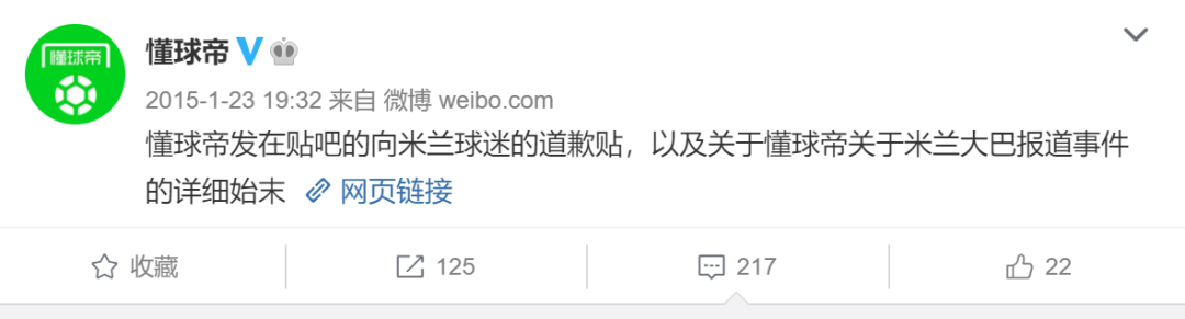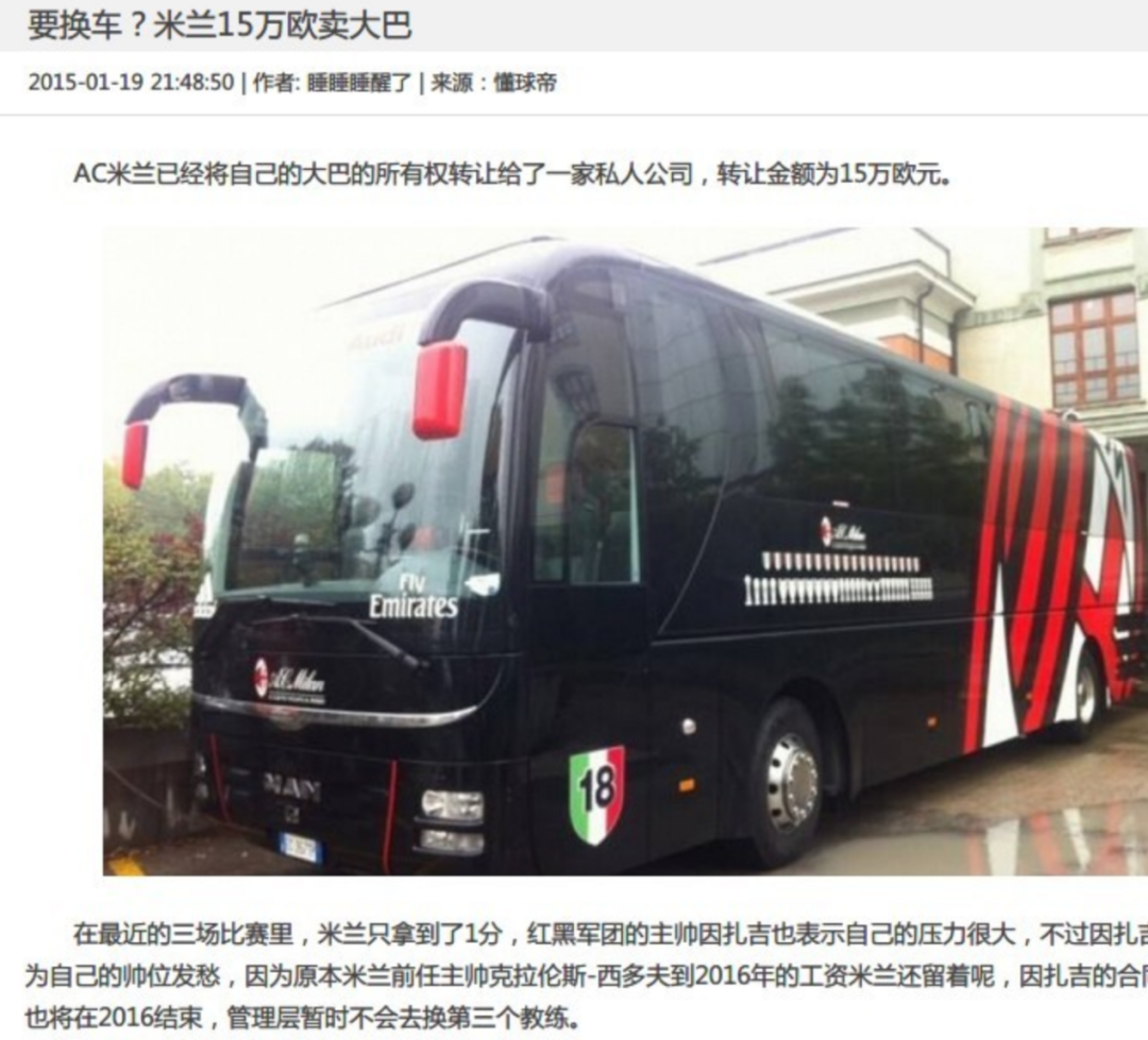 2015年发生的大巴事件可能是最有代表性的案例。2015年1月,懂球帝App上发布了一篇标题为《要换车?米兰15万欧卖大巴》的新闻,而这篇新闻很快演变为了懂球帝一次严重的舆论危机。