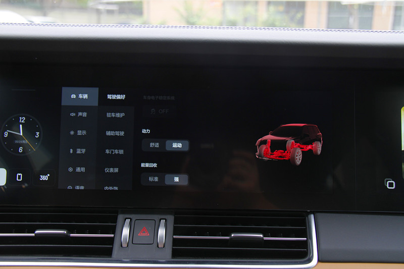例如,我要在系统中调节车辆的驾驶模式,只需要点击大项目集,找到驾驶模式的操作菜单,顺势点开便可以任意切换。每一个功能与项目集内的二级菜单完美对应,最深的功能不过三级。