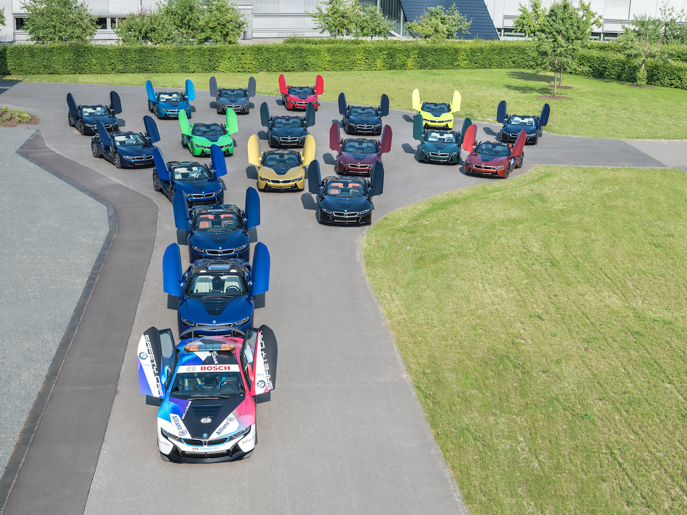 宝马也不愿让它太快地消逝于人们的记忆力,故决定生产18台特殊车漆颜色的Roadster车型:奥斯丁黄,英国赛车绿,勒芒蓝等,都出现在了i8的车身上。这些充满想象力的颜色此前从未在i8量产过程中得以实现。