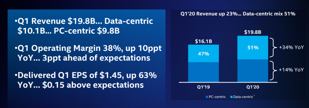 从财报数据中我们也可以看到,英特尔的PC收入与去年同期相比增长了14%,但其数据中心部门的增长却更大。在此期间的销售额达到70亿美元,同比增长43%。