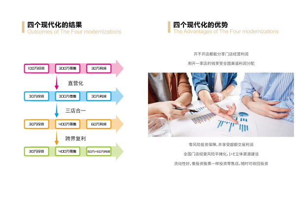 其次,利用手中现金的投资款,收购所有加盟店,并反承包给加盟商,将所有门店直营化。同时为所有单一门店配备网店、微店,进行三店合一的配套。
