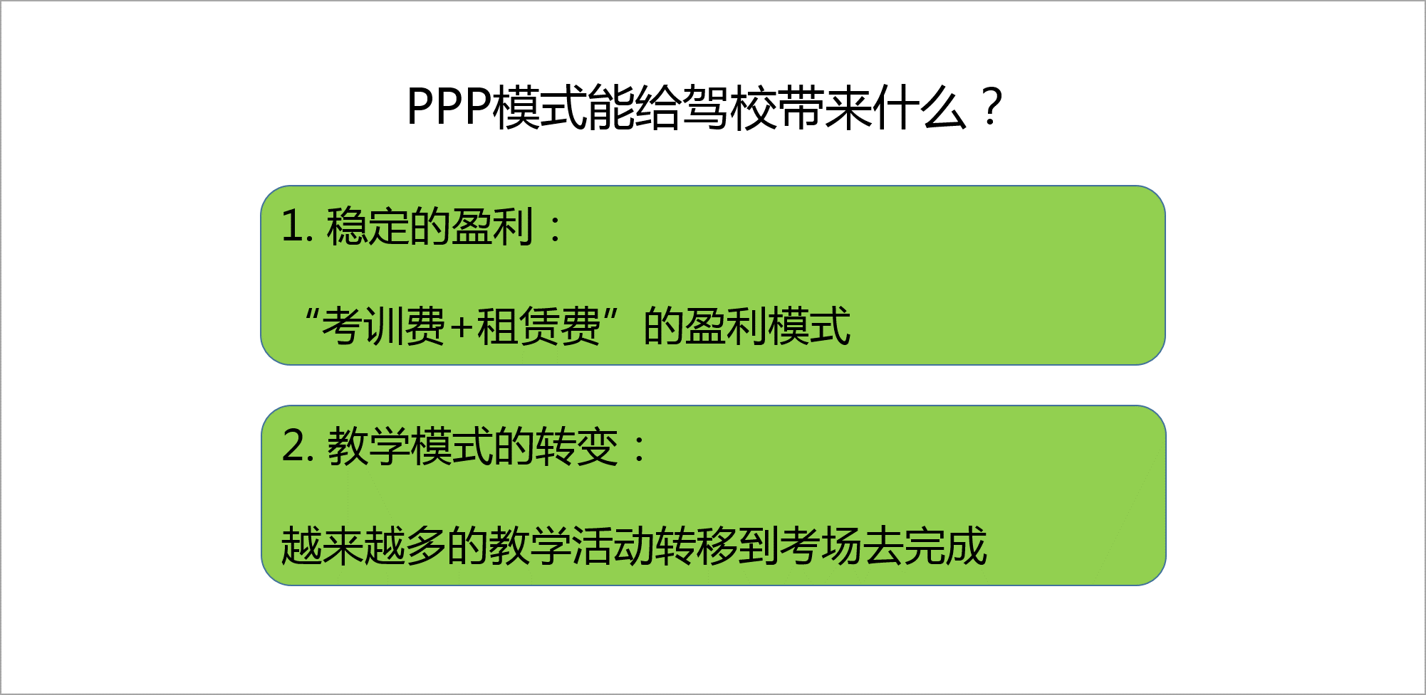 对于行业而言,PPP模式将改善整个驾培行业的生态。