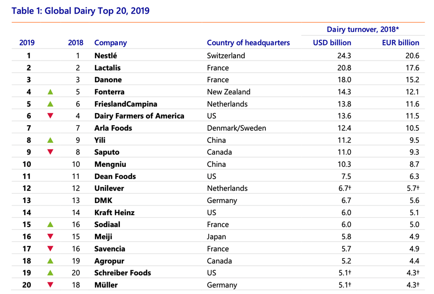 全球乳企排名(来源:Rabobank,元气资本)