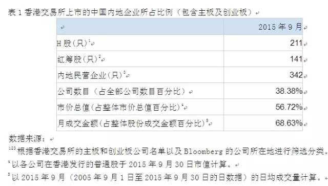 香港上市的中国内地企业数目占香港股票市场上市公司总数的将近四成,市值占到近60%,而且2015年9月的月成交金额更是占到了近70%。可见大陆企业在香港股票二级市场占据了相当大的比例。如果没有这些大陆企业,香港金融市场的规模和利润都将大幅缩水,而香港也将很难被称之为国际金融中心。