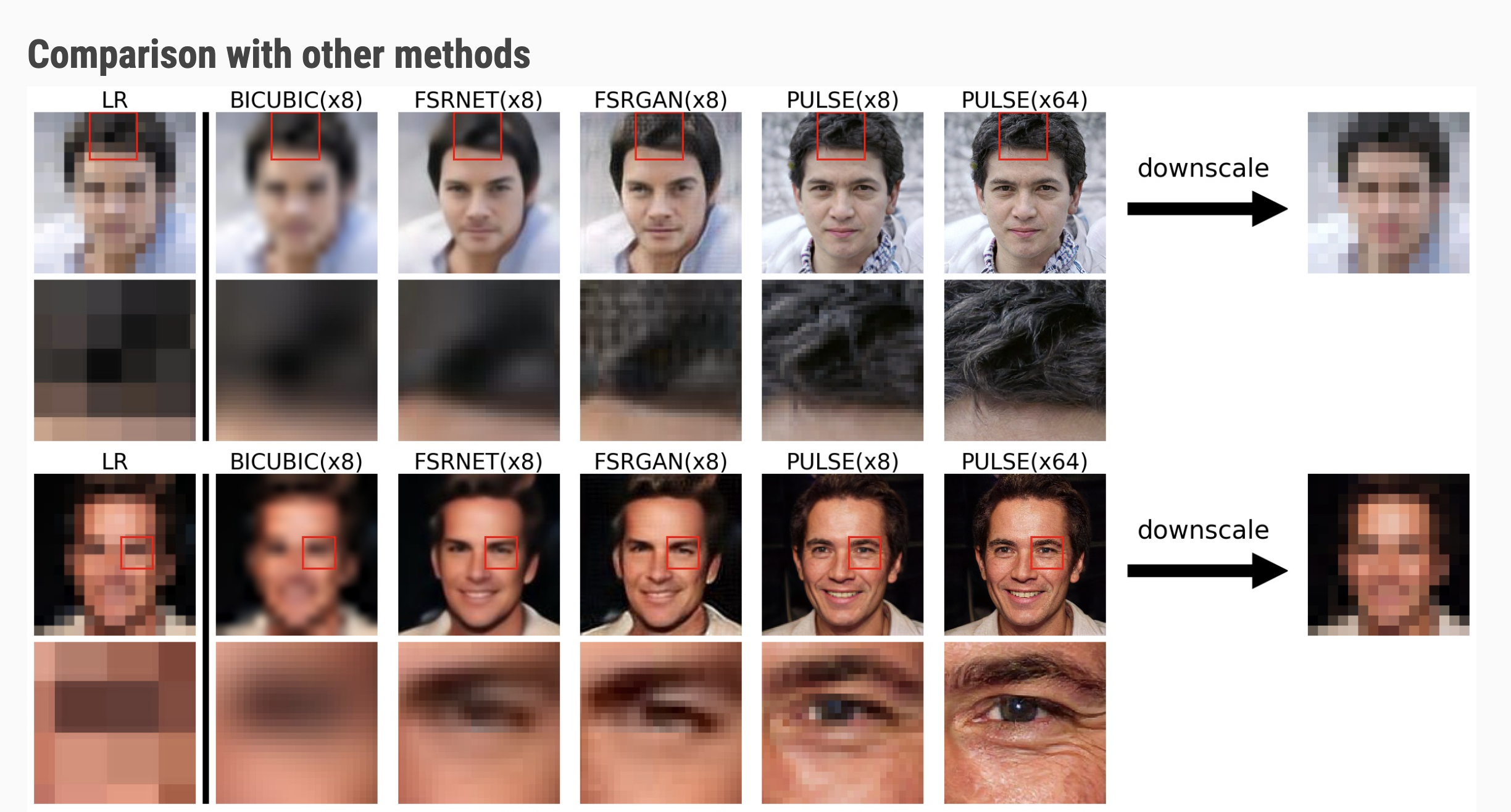 这个名叫PULSE的算法,能够在几秒内将16x16像素的图片提升至1024x1024,分辨率提升高达64倍。目前该算法仅针对人脸照片,经算法生成的新照片能够呈现脸上的毛孔、皱纹甚至一缕头发。