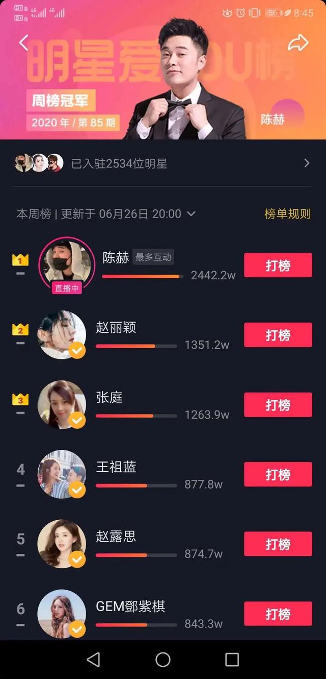 在此之上做明星带货直播符合用户的内容消费习惯。最近几位进行直播带货成绩不错的明星,比如陈赫、张庭和王祖蓝,都进入最新的周榜前十。