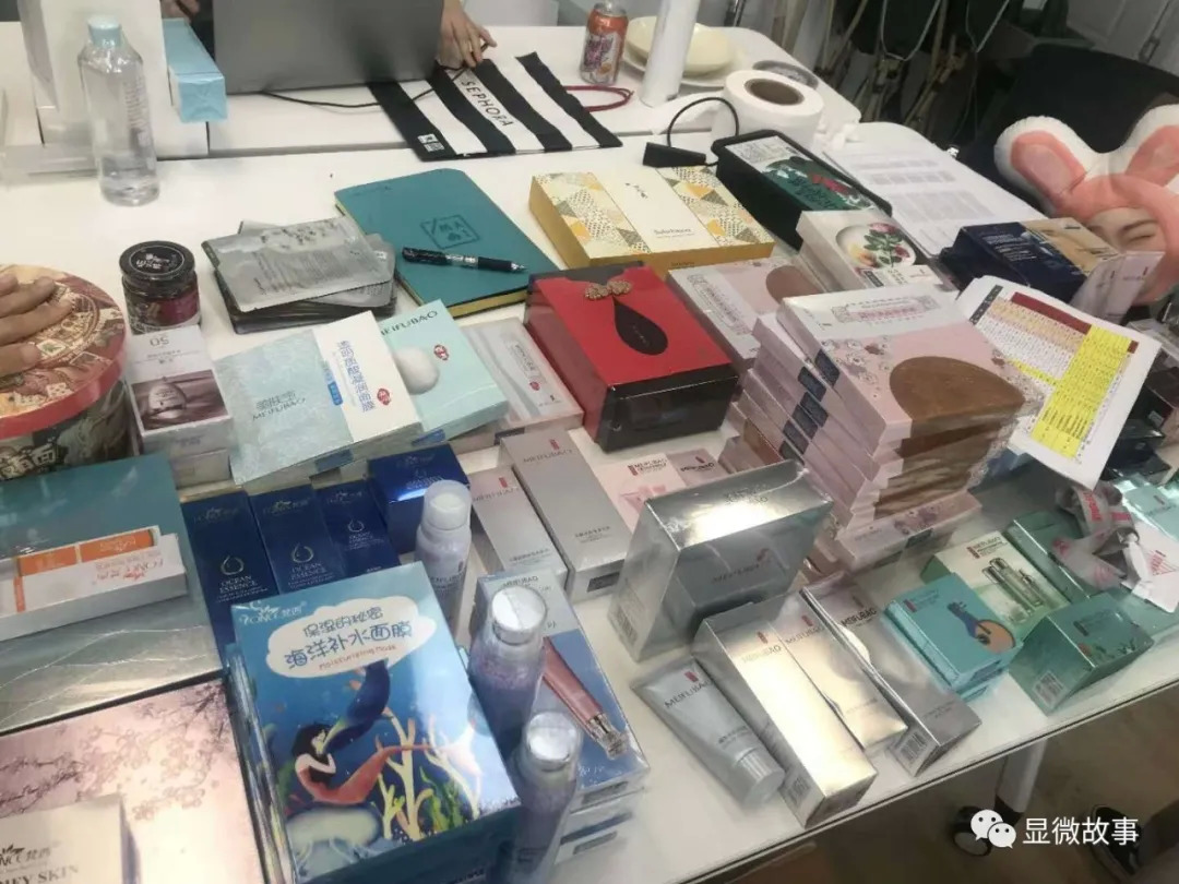 Y每次直播的展示产品就够摆满整张桌面