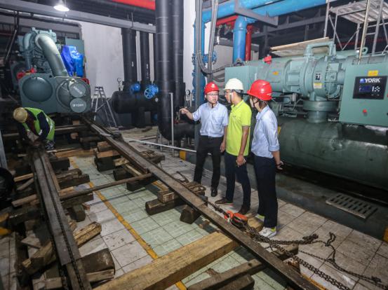 为不影响园区内的租户用电,趁着端午假期,综合能源公司加班加点,对园区内的空调系统进行了改造升级。为做好配套工作,供电公司工作人员多次踩点走访,商讨制定新的供电方案,并对相应的配电柜进行配套改造,以满足新空调系统的用电需求。经过三天的艰苦施工,空调主机等设备顺利更换完成,供电设备也全部配套完工,保障了银晨国际园区内的租户们能度过清凉一夏。