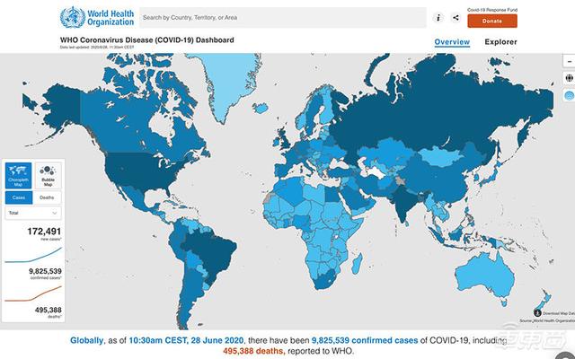 自今年3月份开始,新冠肺炎疫情在海外各地不断蔓延,直至今日尚不能说得到有效控制。根据世界卫生组织报告,截止到北京时间2020年6月28日,全球新冠肺炎患者累计确诊累计982.55万例,昨日新增病例17.25万例。
