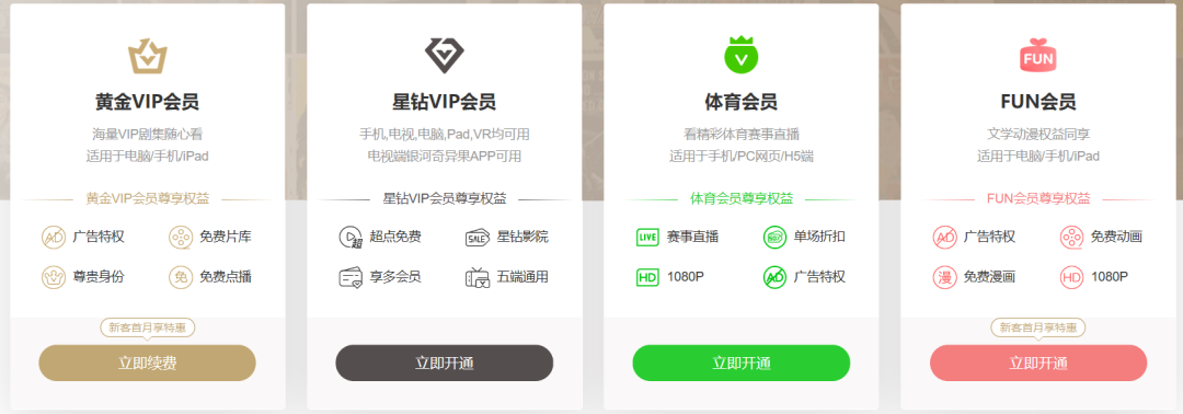 这之后很快,爱奇艺便推出了单月购买60元、连续包月每月40元的“星钻会员”新服务,权益包括了超前点播剧集免费看、星钻影院免费看、多种类会员生态(包括FUN会员、体育大众会员、文学会员、VR会员等)、全终端观看(包括电视、VR设备)、等级成长加速等等。