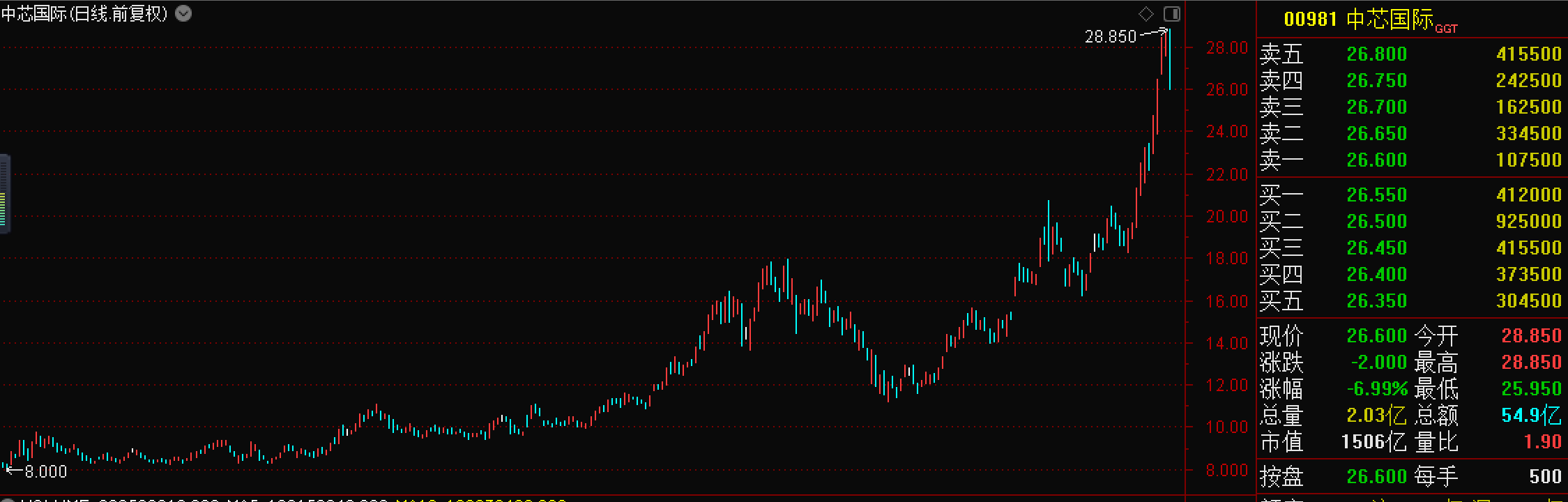 盘面显示,中芯国际2020年3月下旬以来,股价便处于上升通道,短短数月,股价已从12港元一线,推升至26港元上方,这段时间也恰是芯技佳易清仓的时段。