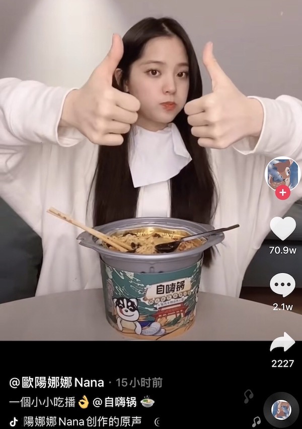 自嗨锅品牌采用了一个更为积极的策略,它想要制造出“半个娱乐圈都在吃自嗨锅”的效果。自嗨锅品牌一开始上市时,林更新就晒出了自己在后台吃自嗨锅品牌的照片。随后,谢娜、华晨宇等明星也加入这一阵营。最近欧阳娜娜也在自己的直播当中,吃起自嗨锅。