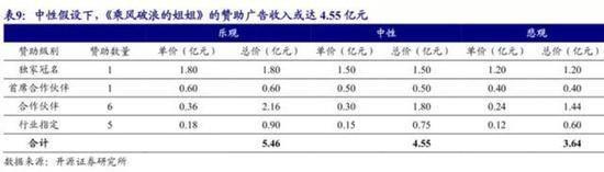 梵蜜琳以4000万小额资本入场,一季下来,据开元证劵研究所报告显示,2020年中性预测,独家冠名的广告商至少盈利1.5亿元。