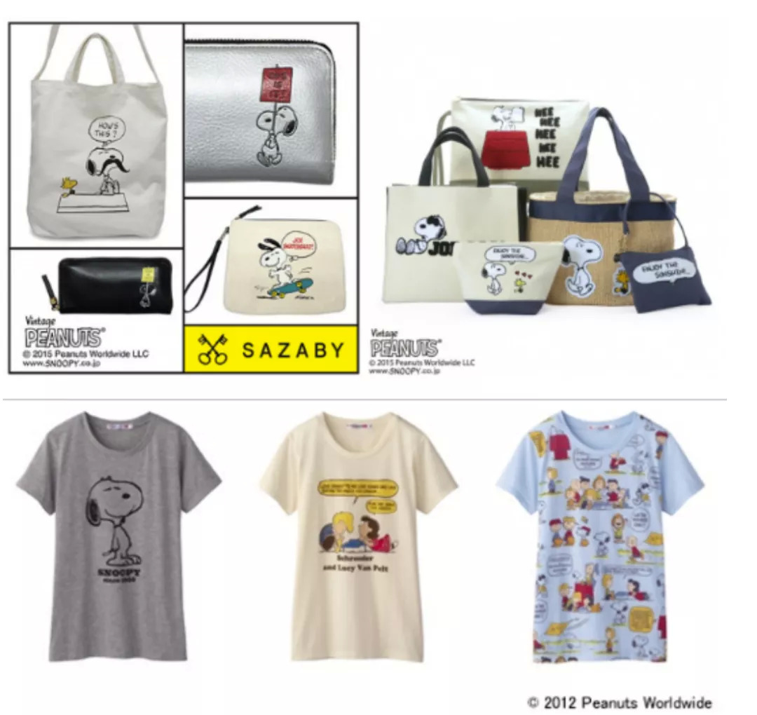 鞋服配饰方面,包品牌SAZABY和cache cache与史努比出了联名款,优衣库UT系列推出了史努比款式,日本最可爱的家居服品牌之一gelato pique与史努比进行了首次合作,日本职业棒球的中央联盟和太平洋联盟也与史努比进行合作,以促进制服、T恤的销售。