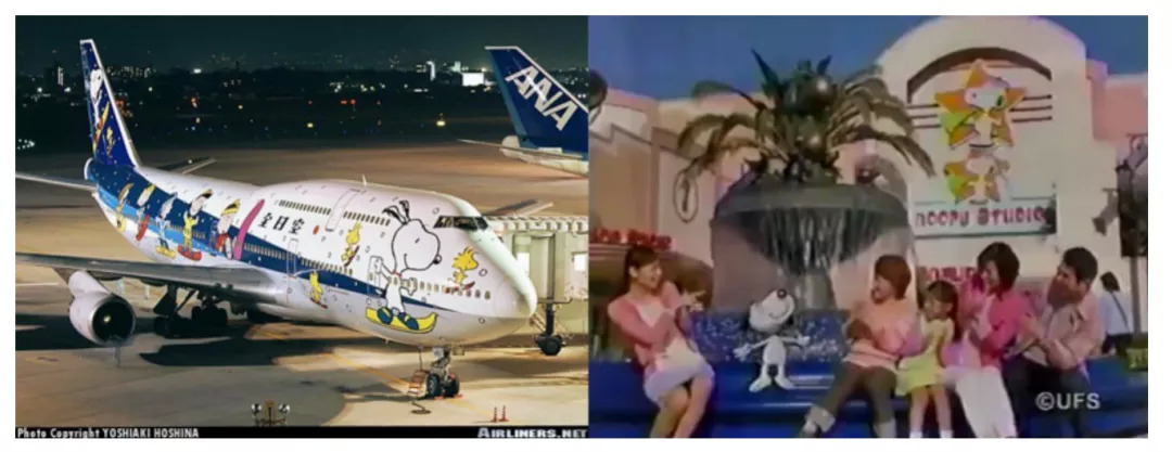 1997年,神奈川中央交通引进了40辆车身画着史努比的“史努比巴士”。同年,老客户ANA将一架波音747-400D的机身涂上史努比彩绘,飞机编号为JA8961,限定航线为东京-北海道专线,结果大受好评。因而,ANA在1998年使用了全新素材,推出两架新的史努比彩绘飞机JA8965和JA8139。1998年动工的大阪环球影城更是将史努比作为代表IP之一引入园中。