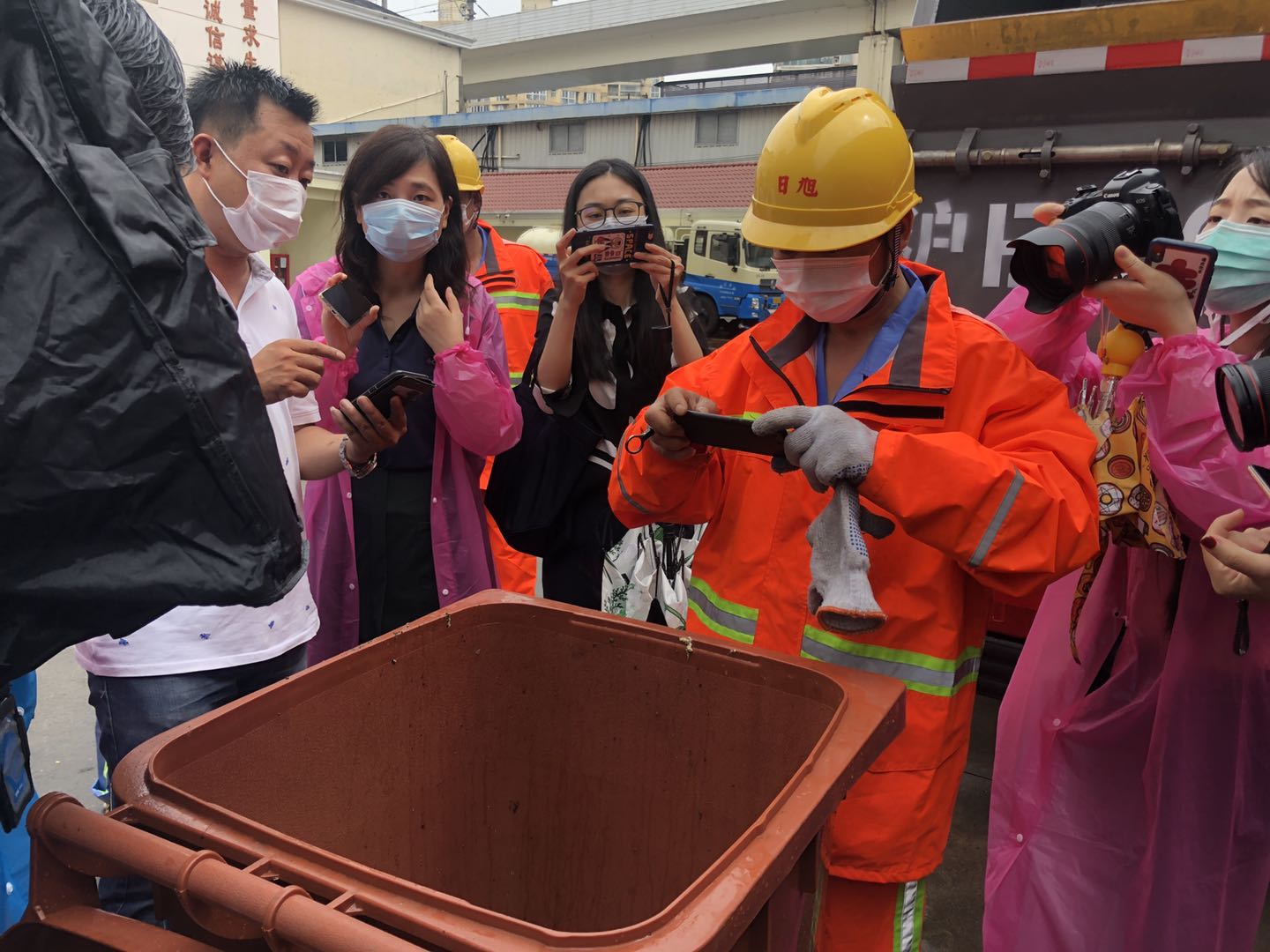 何俊介绍道,在作业过程中,收运人员一旦发现不合格点位,可以直接拍照取证上报班组,由班组长审核后上报平台,APP将问题照片推送至街道及物业,使得管理部门能第一时间知晓情况,督促不合格单位即时整改。