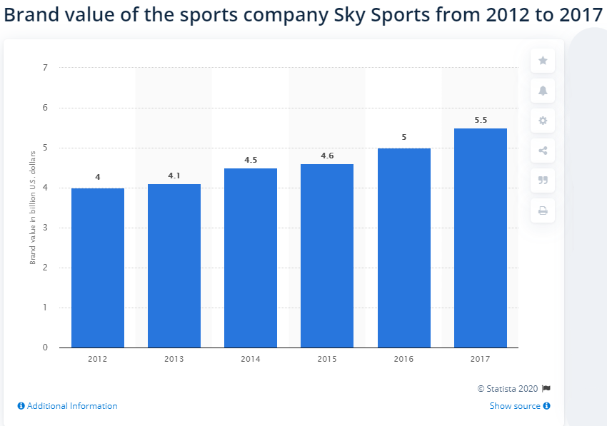 天空体育2012-17年的品牌价值