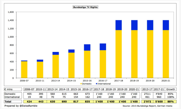 近20年德甲各版权周期的本土转播价格