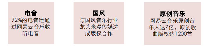 网易云音乐聚焦细分垂直领域,在国风音乐、电音、原创音乐上有较突出的优势。第四季度财报显示,截至2019年12月,网易云音乐平台入驻原创音乐人总数超过10万,音乐人上传原创作品总数超150万首。