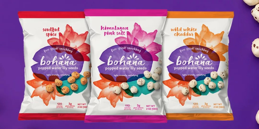 Bohana是一款通过睡莲种子膨化做成的植物基坚果零食。睡莲种子的食用,在印度已经有数千年的历史,它是阿育吠陀饮食中最常见的植物果实原料。Bohana使用的睡莲种子来源于印度比哈尔邦的一个农场,通过与农户之间建立公平贸易关系,可持续的种植采摘睡莲种子,建立高效的供应链,这使得Bohana能够获得最优质原料。