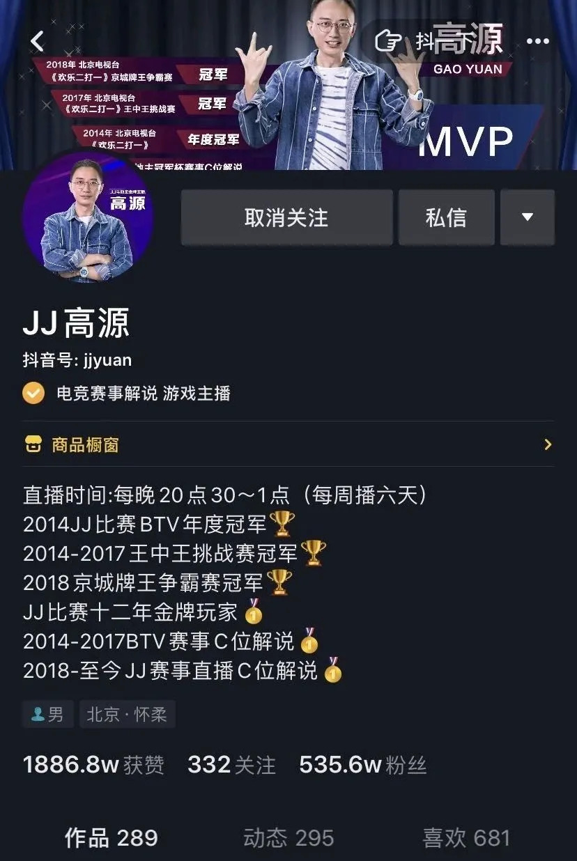 就说抖音,解说斗地主的JJ高源,粉丝数最近突破了500万大关,一只脚迈入抖音一线网红的行列。作为“斗地主”垂直内容领域的佼佼者,其作品累计点赞量1886万。而抖音倾其流量扶持的新晋带货大V罗永浩,不过刚刚1200万粉丝,作品累计点赞量1563万。