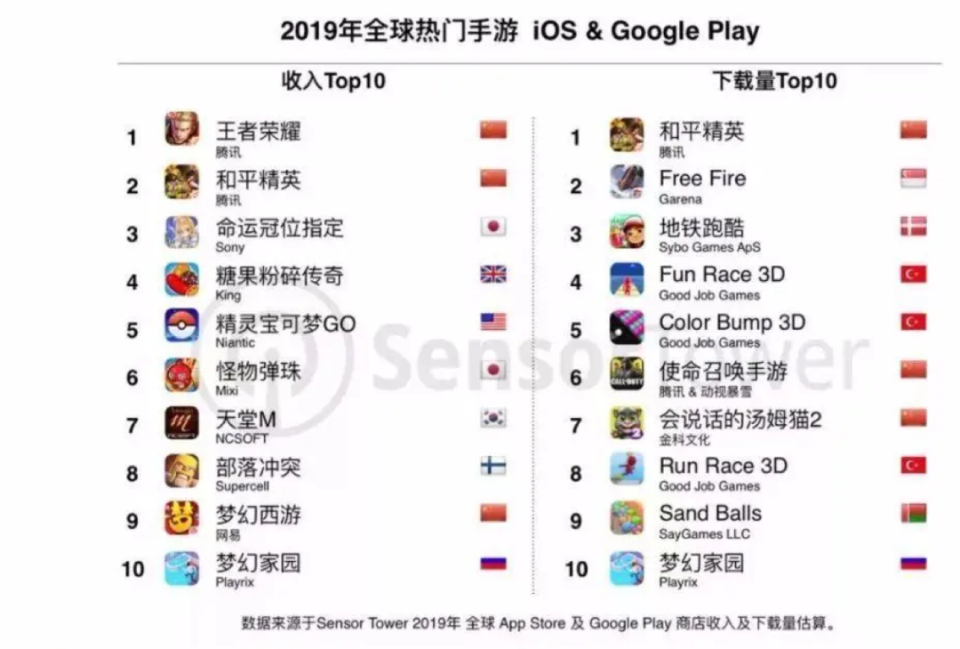 只做能被每个人玩上、能持续被玩数年、能被永远记住的游戏,是Supercell的企业文化,这也确实是事实。《部落冲突》于2013年公测、《皇室战争》于2016年发布,而这两款游戏至今仍是手游榜中的常客——2019年全球热门手游榜中,2013年的《部落冲突》居然还能排在第八位,前十中也只有《王者荣耀》可以相比,可见其常青地位。