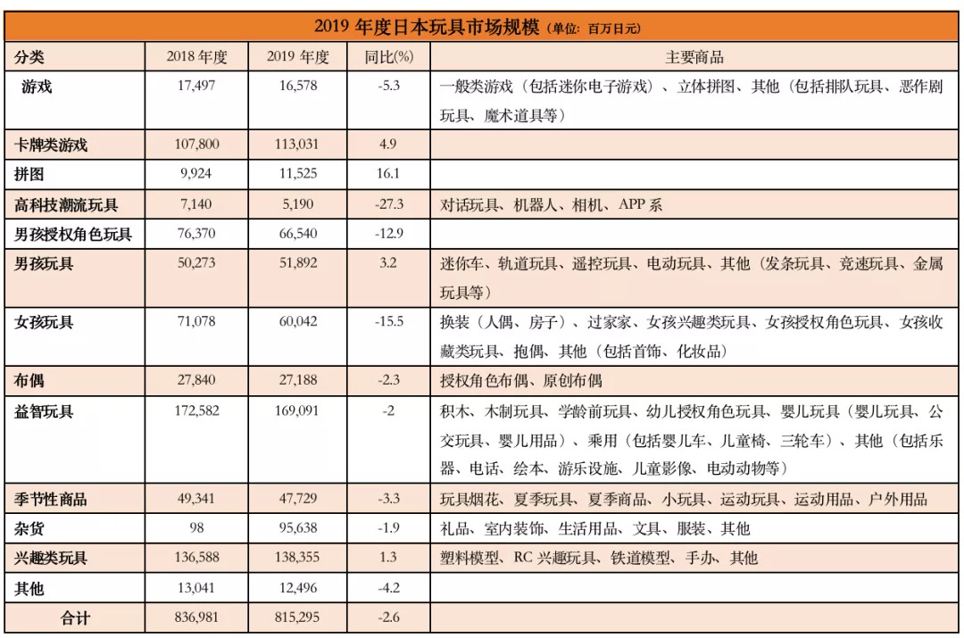到2019年,玩具市场规模虽有小幅度下降,但也站稳了8000亿日元的关口。