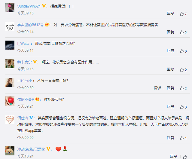 针对《条例》的发布,网友纷纷表示看好,有不少拒绝假货、微商、直播带货的一定要严格审查、化妆品监管越来越严格是好事等言论。