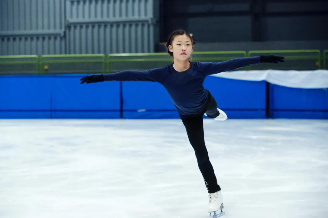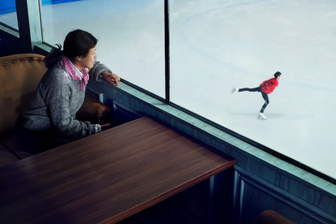 哧哧——哧——冰鞋滑过冰面,女儿妮妮像小鸟般飞起。她本该在空中完成旋转后稳稳落冰,但她摔倒了,瘦薄的背影屈身而跪,拳头焦躁地捶向冰面。