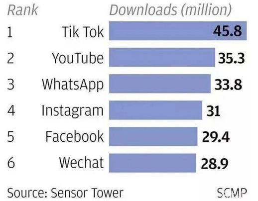 TikTok是抖音海外版,据说在海外也很火,APP下载量在美国、英国、印度等国名列榜首。据Sensor Tower数据显示,2019年第四季度,TikTok被下载了2.19亿次。截至2019年底,TikTok总计下载了16.5亿次下载。甚至有人将TikTok未来与FaceBook进行比对了。这种现状确实鼓舞人心。