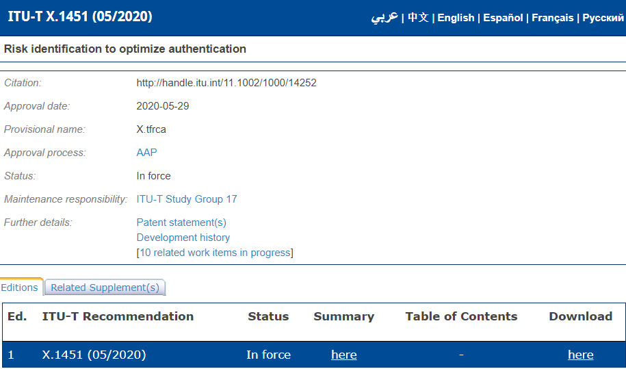 这项名为ITU-T X.1451(Risk identification to optimize authentication)的国际标准,由国际电信联盟发布。ITU-T标准是全球信息通信技术(ICT)基础设施的定义要素,符合其标准的信息通信系统可通行全球。
