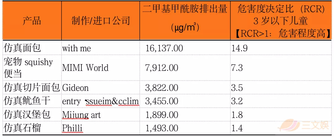 该报道指出,MIMI生产的一款“宠物squishy便当”儿童玩具产品中测出具有刺激粘膜、引发晕眩感的肝毒性物质——二甲基甲酰胺(DMF)。