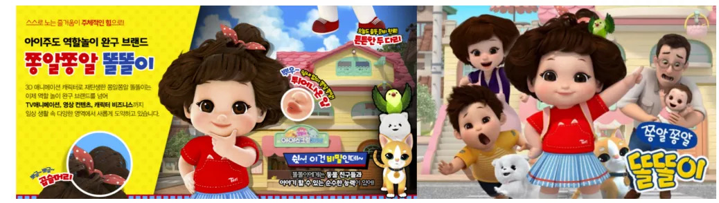 其中智能幼儿玩具聪聪实现了动画化,以《嘟嘟囔囔的聪聪》的名字,携同一家三五口和三只可爱的小动物一起走进了BTV、Olleh TV、ANIMAX等多个幼儿频道,将欢乐带给每一个观看的家庭。