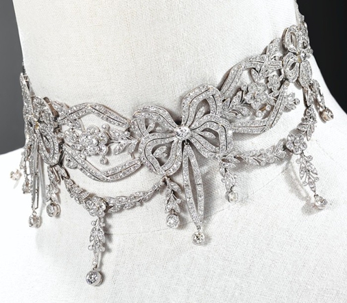 20世纪初始,高级定制时装兴起,华丽的裙装风靡于巴黎上流社会的优雅仕女中,象征地位、品位的珠宝风格也随之往优雅、华贵的风格发展,她们喜爱十八世纪法国宫廷式的豪华珠宝,取材均是最稀少、珍贵的宝石和贵重金属,又典型地以花朵搭配丝带及蝴蝶结图案,制成如花冠般的造型,这正是英王爱德华七世的辉煌时代。