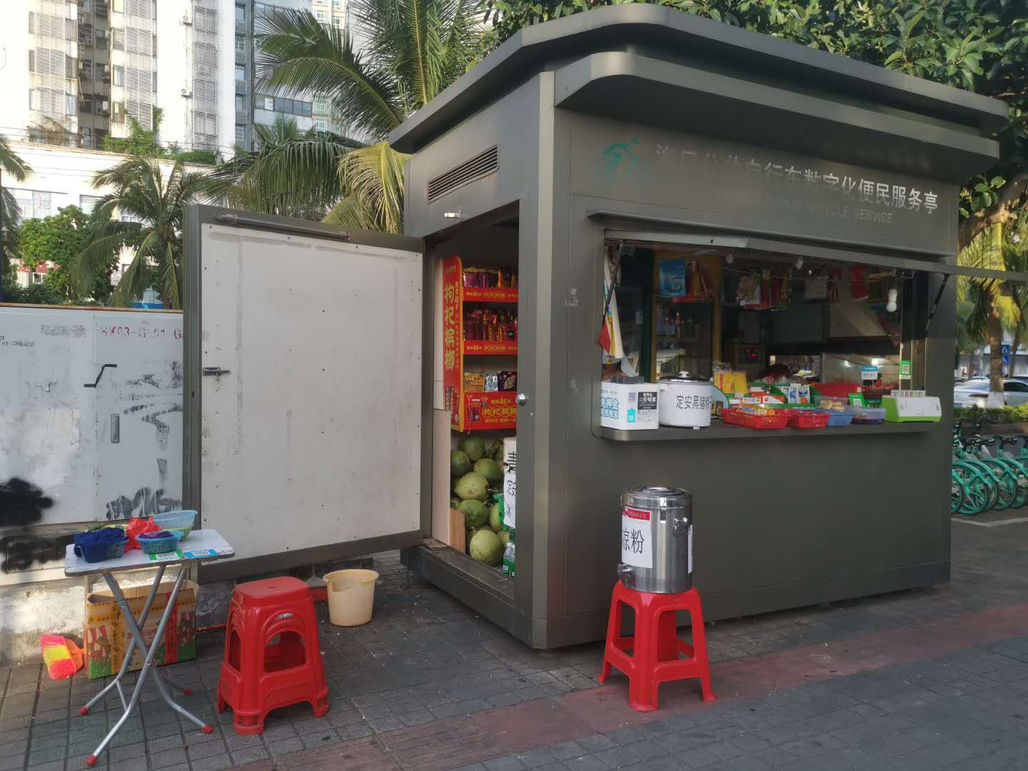 不仅如此,高温还带旺了一些卖冷饮、水果的小商贩的生意。海口市人民医院斜对面一家便民服务亭,顺便经营着一个冷饮冰柜,销售一些矿泉水、果汁饮料、椰青、黑凉粉等。老板称:“这几个月,冰柜的营业额远远高于其余小食面点。现在我一天要卖几百份饮料和椰子,经销商每天要来给我们补两次货。”老板算了一笔账,一天下来也有三四百元进入荷包,赚得还真不少。