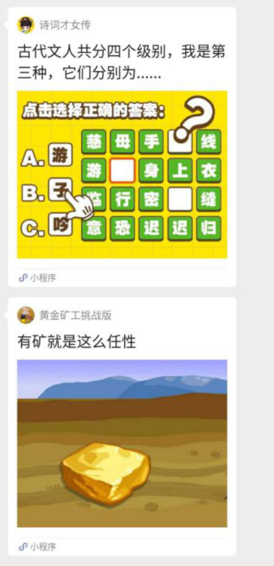 对于用户而言,游戏小程序上的广告链接是用户游玩过程中最膈应、最影响体验感的一点。如果有比这更恶心的存在,那只能是那些诱导性的分享和低趣味的广告画面了。