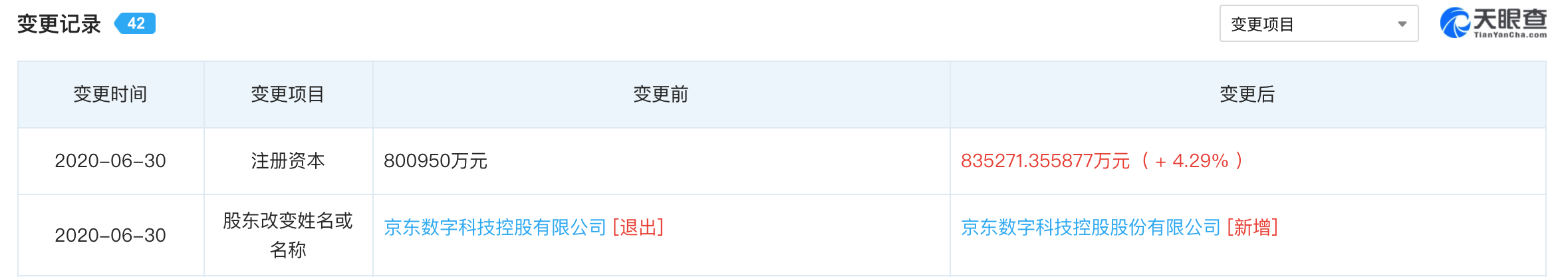 2日下午消息,天眼查数据显示,6月30日,网银在线(北京)商务服务有限公司发生工商变更,注册资本从约80.09亿元增至约83.52亿元,增加了约3.43亿元人民币。该公司由京东数字科技控股股份有限公司100%控股。