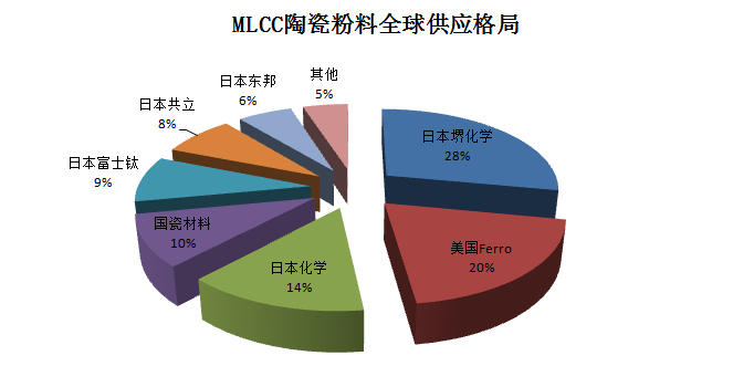 2005年成立的国瓷材料是MLCC上游陶瓷材料供应商,主要生产MLCC用基础粉、配方粉。MLCC即多层陶瓷电容器,也被称为片式电容器,被广泛应用在手机、家电、计算机、汽车等领域。MLCC 生产中涉及的主要技术为电介质陶瓷瓷粉的制备、流延成膜陶瓷膜的薄膜化以及陶瓷粉体钰金属的共同烧结技术。由于瓷粉在整个MLCC中的成本占比较高,瓷粉供应商的选择及产业链配合重要性凸显,国瓷材料通过入股上游原材料厂家,实现了从基础原材料到配方粉全产业链布局,是全球行业中唯一一家布局全产业链的企业,公司是继日本堺化学之后国内首家、全球第二家成功运用水热工艺批量生产纳米钛酸钡粉体的厂家,目前已经成为国内规模最大的MLCC电子陶瓷材料生产商,在全球的市占率排名中位居第四,约为10%。