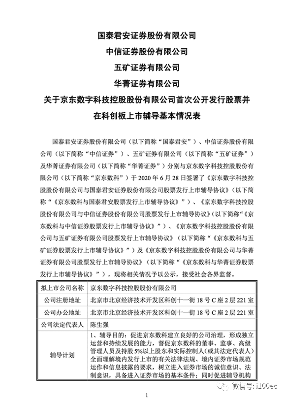 7月1日,中国证券监督管理委员会北京监管局发布信息显示,国泰君安证券股份有限公司、中信证券股份有限公司、五矿证券有限公司及华菁证券有限公司分别与京东数字科技控股股份有限公司(以下简称“京东数科”)于2020年6月28日签署了上市辅导协议。