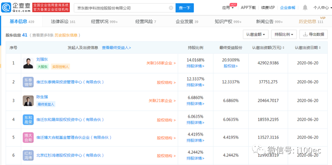 另据企查查数据显示,京东数科成立于2012年9月5日,法定代表人为陈生强,注册资本30.6081亿元,刘强东为实际控制人,持股14.0168%。不过,根据此前京东集团公告,由于特别表决权股份的设置,京东将持有京东数科约18.7%的投票权,刘强东及其控制实体宿迁领航方圆股权投资中心共同持有的投票权占比54.7%。