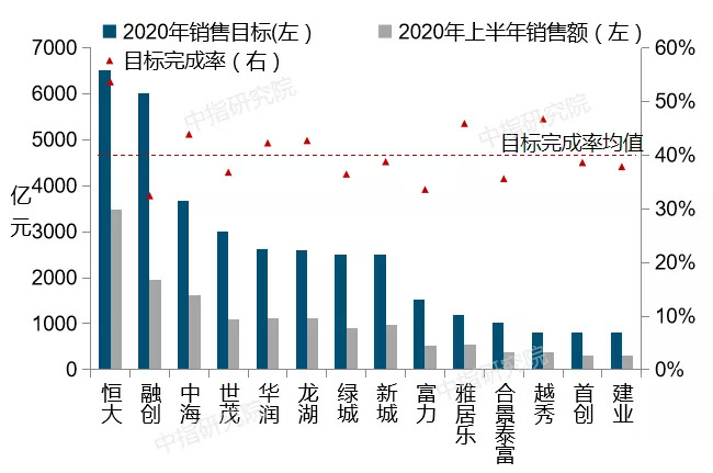 代表房企2020年上半年销售目标平均完成率为四成。2020年受新冠疫情影响,房企项目销售承压,截至上半年,重点监测房企年度平均销售目标完成率为40%,低于往年水平。预计下半年,随着疫情对房地产市场预期的负向影响逐渐减弱,企业供货力度将会持续提升,“促销售、抢回款”仍将是重中之重。
