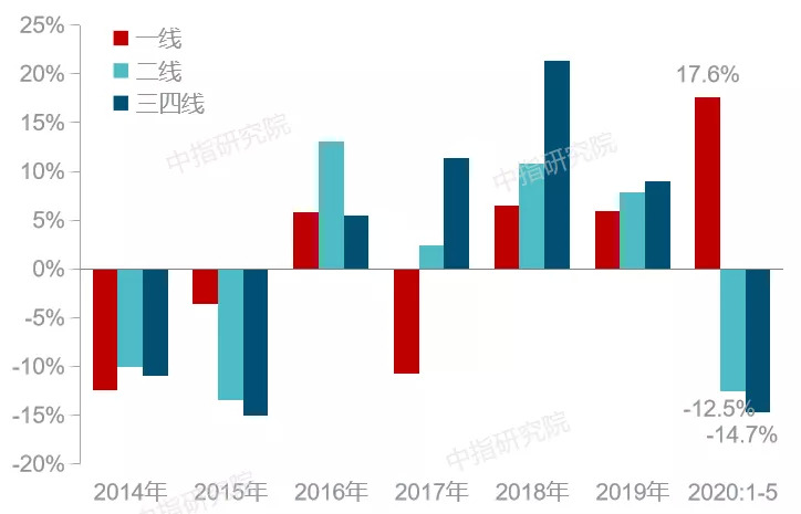 三四线城市:部分城市需求已存在透支,加之2020年棚改力度进一步减弱,需求持续性较弱,下半年销量或将存压,房企投资也将较为谨慎,开工或保持调整。