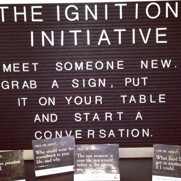 所以如果不能一边喝拿铁一边上网,那你能在这里做什么呢?咖啡馆的收银台旁边放着一个黑白书写板,客人可以从那拿一个小牌子,并以此为话题同陌生人展开对话: