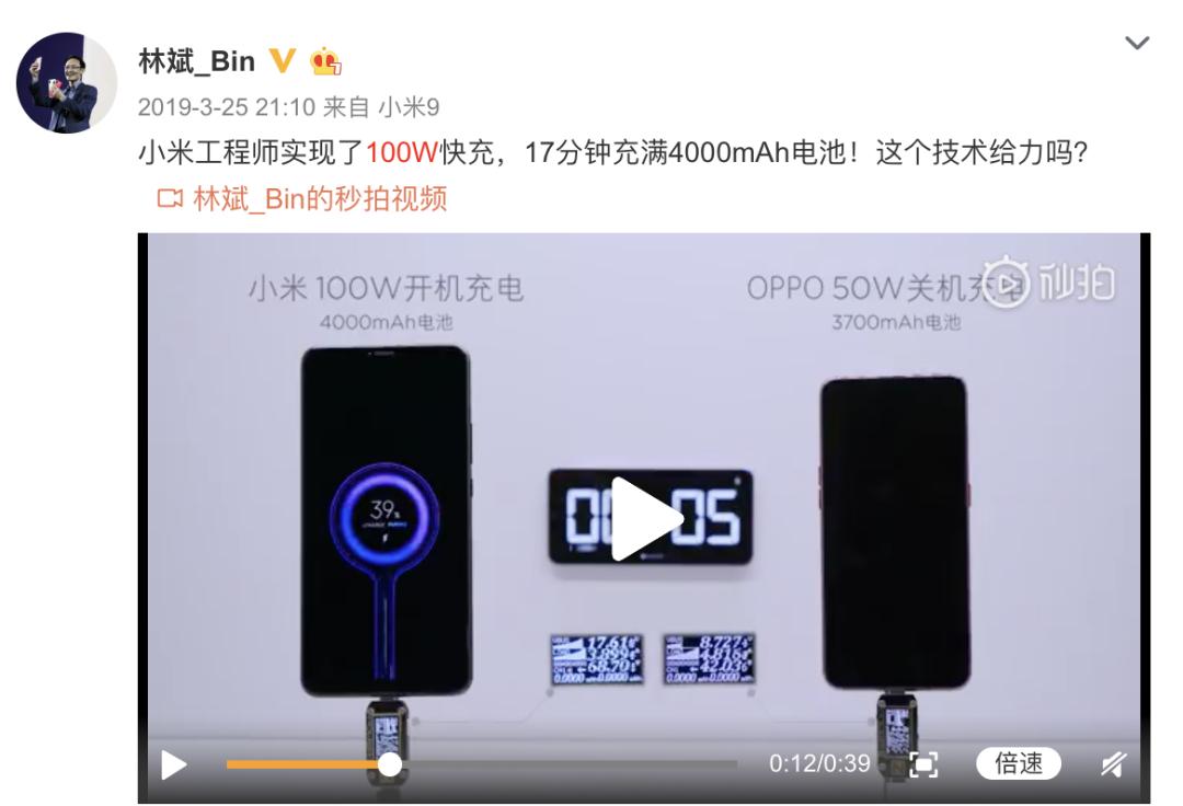 除此之外,小米中国区总裁卢伟冰也曾表示,支持100W快充的手机电池,其能量密度和安全性能都会受到较大挑战,如果贸然上马100W快充,体验可能达不到最佳。