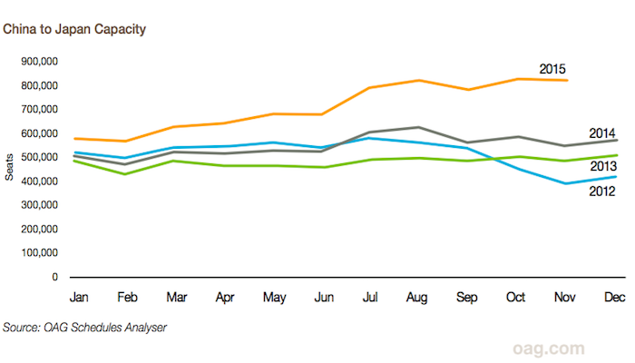 尽管日本经济毫无生机,但是这并不妨碍航空市场的繁荣。事实上,经历过2012的反日大游行之后,中日之间的航空来往变得日益频繁,市场逐渐复苏。